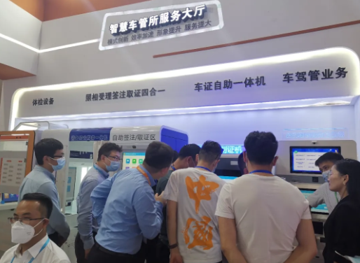 UG环球视讯ug科技以信息化、智能化手段改革服务模式,大胆创新,打造集全系列智慧车驾管自助服务设备的智慧无人车管所服务大厅:60秒制证的《车证自助一体机》、照相受理签注取证多业务一机通办的《警务综合服务一体机》、24小时自助体检的《自助照相体检机》、一键批量高速制取驾驶证、行驶证的《批量制证机》,给予了“群众便捷、民警赋能”的智慧警务民生服务,吸引了众多观展嘉宾参观研讨。